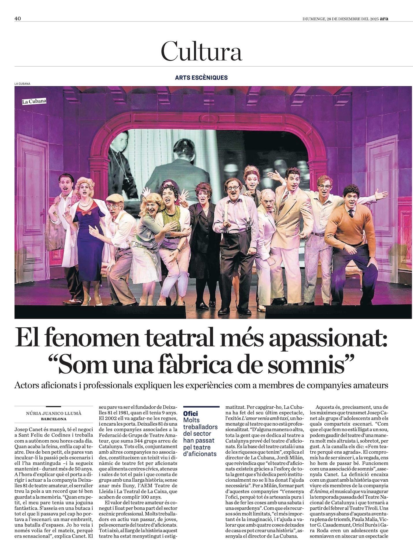 El fet que hi hagués actors i actrius de totes les edats va comportar una recerca exhaustiva d’on trobar els actors més joves. Aquí és on l’Escola de Teatre de l’Espai va poder fer la seva contribució que va resultar indispensable. Hem volgut parlar amb ells per saber quina ha estat la seva experiència.