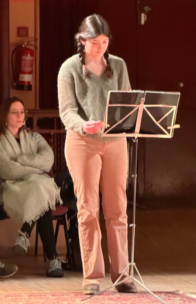 Van anar-hi tres joves que formen part de l’Escola, tot i que un d’ells, el Marc Cabestany, ha hagut de deixar-la aquest curs per incompatibilitats horàries. Li ha estat innovador actuar llegint i prou, sense haver de moure’s per l’escenari. Tampoc havia fet mai un drama. Normalment, les obres de teatre que preparen els alumnes de l’Escola de la seva edat no tenen la gravetat d’aquesta història situada al Nord d’Irlanda els anys dels conflictes armats. Ens ha dit que “Ha estat increïble, m’ha encantat actuar amb gent més gran perquè n’he après molt. Ho repetiria sense cap dubte“. Tot plegat li ha reafirmat que es vol dedicar al món del teatre, potser no de manera exclusiva per les dificultats econòmiques que pot tenir, però diu “que sempre seré actor, sempre he volgut ser actor i continuaré sent actor fins a la fi“. No hi ha dubte que amb 13 anys sap què vol.