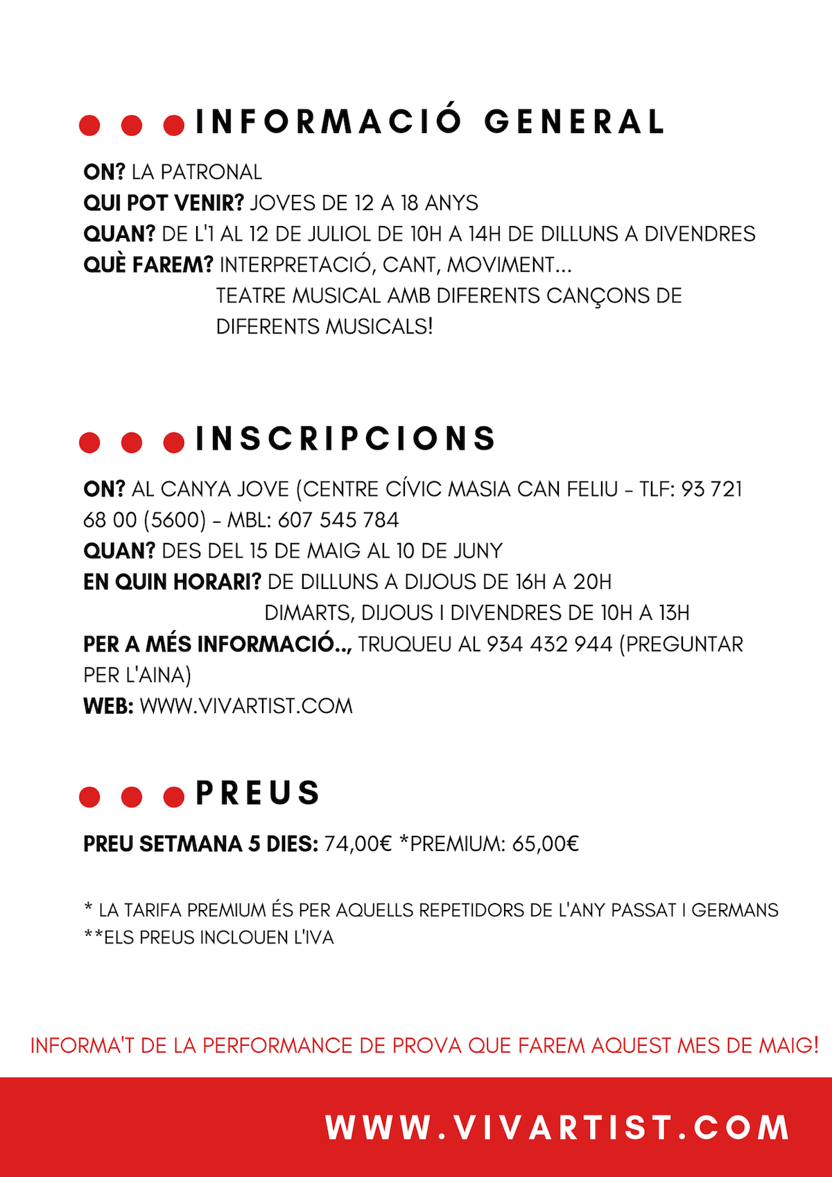 Canya Jove promou un casal d’estiu artístic a Sant Quirze. Hi haurà interpretació, cant, moviment i teatre musical.
