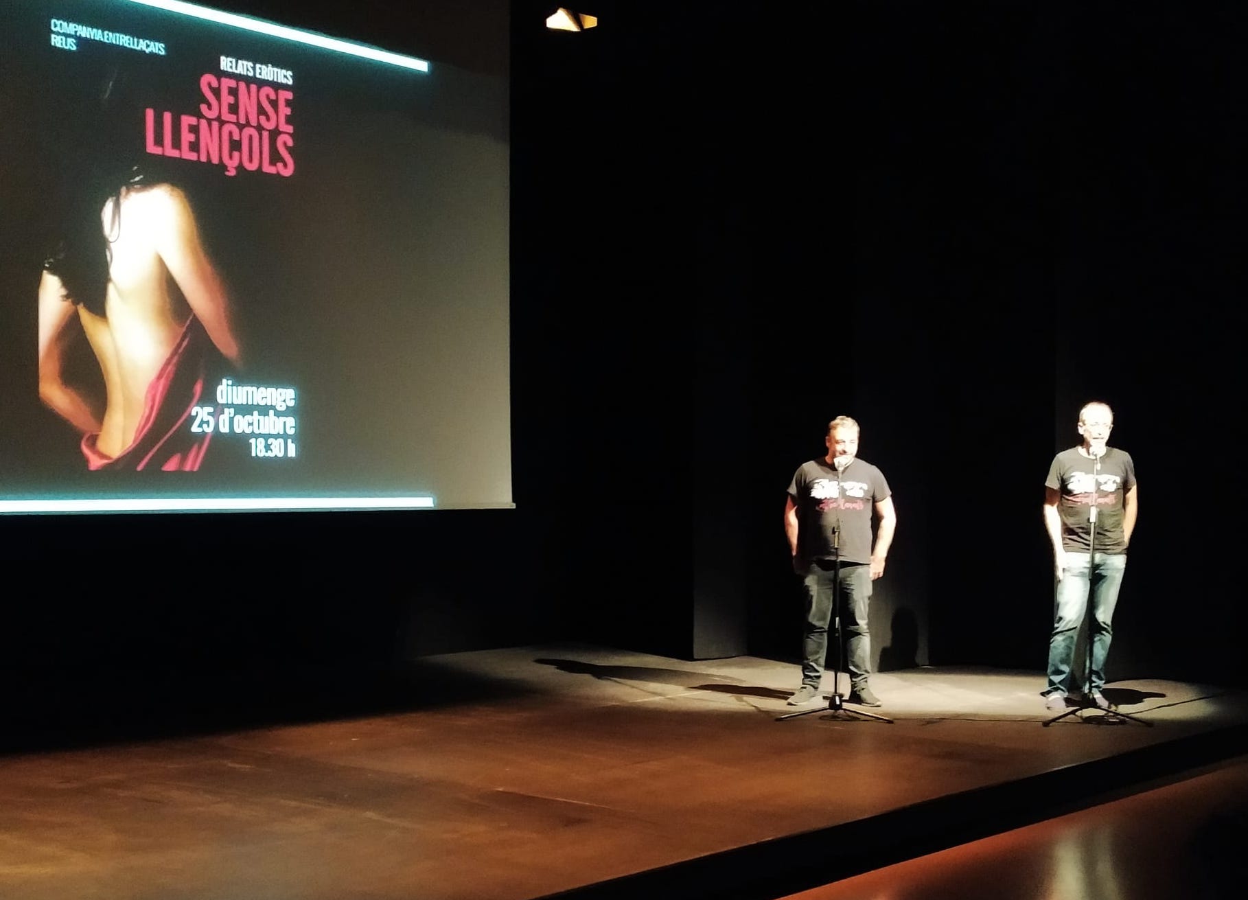 La primera obra serà “Sense llençols“, un seguit de relats eròtics que ens portarà la companyia Entrellaçats de Reus. Serà el diumenge 25 d’octubre a les 18.30. Les entrades sortiran a la venda aquesta setmana.