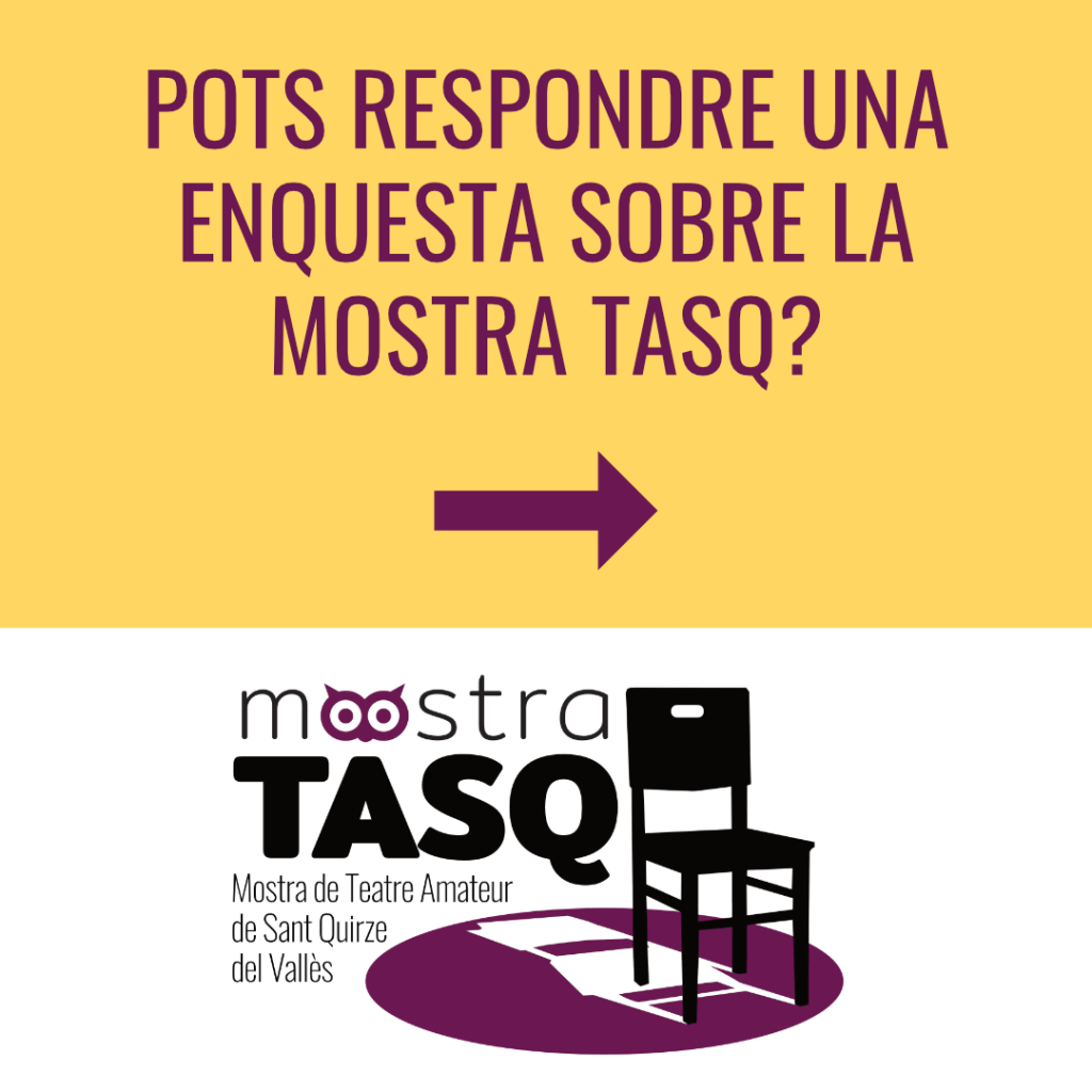 Enquesta: ens ajudeu a millorar la Mostra TASQ? 11/12/202111/12/2021 / nani Volem seguir fent una bona Mostra TASQ. Ens ajudeu responent aquestes preguntes? Moltes Gràcies. Comparteix això: Feu clic per compartir al WhatsApp (S'obre en una nova finestra) WhatsApp Feu clic per compartir al Telegram (S'obre en una nova finestra) Telegram Tweet Feu clic per enviar un enllaç per correu electrònic a un amic (S'obre en una nova finestra) Correu electrònic MésComparteix al Tumblr Feu clic per compartir al Mastodon (S'obre en una nova finestra) Mastodon M'agrada S'està carregant... Relacionats