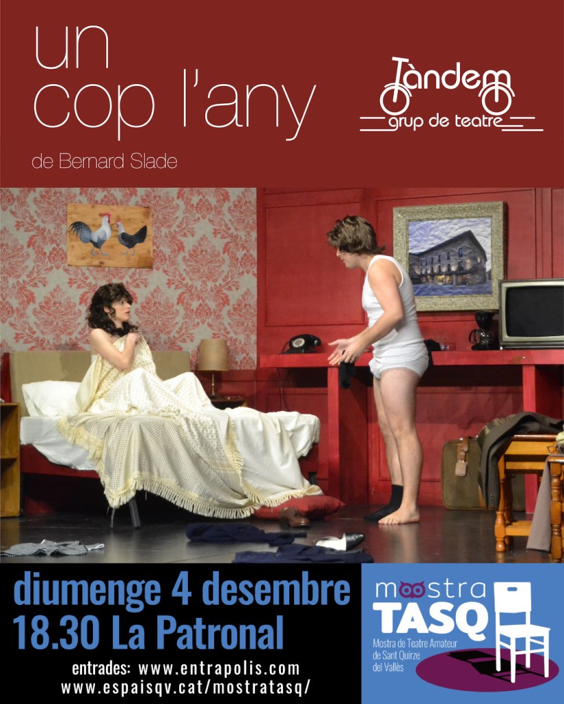 El Grup Tàndem, de Santa Perpètua de Mogoda, ja ha participat un altre cop a la Mostra TASQ i això només, ja vol dir alguna cosa positiva. Porten des del 1971 funcionant amb aquest nom i han fet tot tipus d’obres. També organitzen una Mostra de teatre a Santa Perpètua.