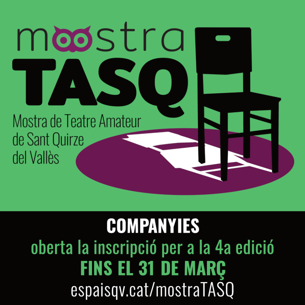 La Mostra TASQ, la Mostra de Teatre Amateur de Sant Quirze, arriba a la seva 4a edició mantenint el seu compromís de portar el millor teatre amateur.
